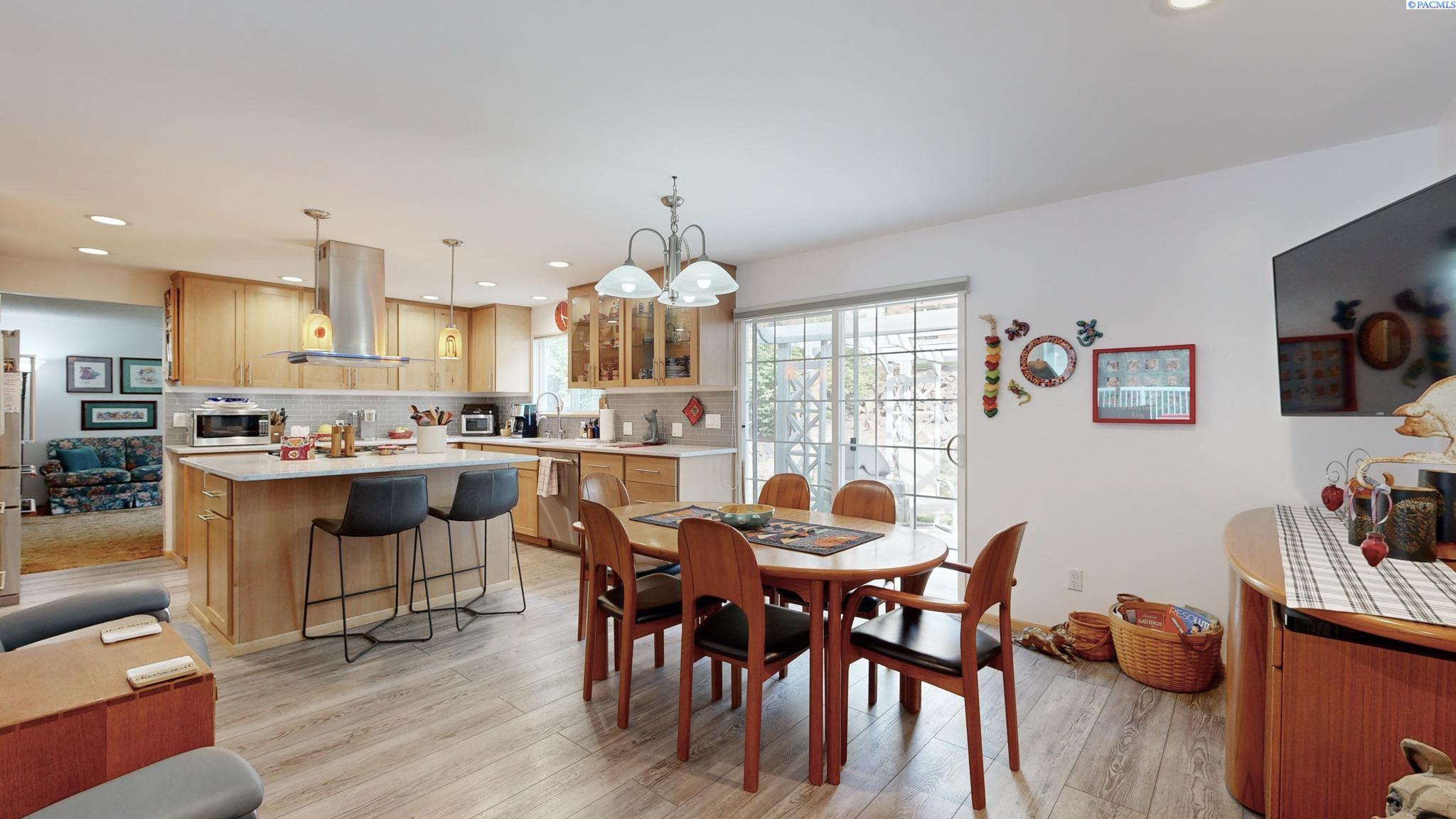 MLS# 279199 Looking for an updated 4 bedroom home steps away from Sunnyside Park and Sunnyside Elementary? This is it! This exceptionally well maintained home features a remodeled kitchen with laminate floors, new cabinets including pull outs in the drawers and a pullout pantry that will absolutely delight you! The kitchen boasts granite counters, tile backsplash and newer stainless steel appliances plus a gas cooktop for the cook of the family! The kitchen opens up to a great dining/TV area with a gas fireplace for those cozy evenings. The adjacent slider leads to a patio, perfect for outdoor entertaining or your morning coffee. The main floor also features a main level primary bedroom with a continental style bath, also remodeled, with a beautiful hand painted sink. This floor is comp...