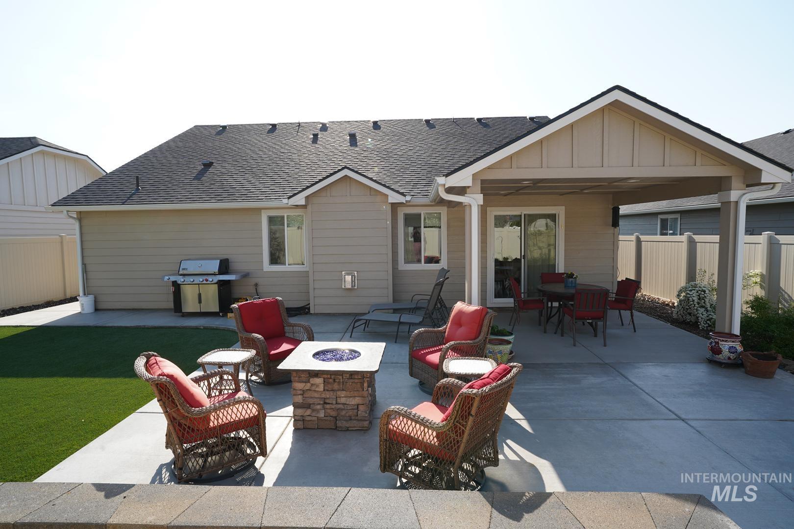 Welcome to your stunning new one-level home, where luxury meets convenience! This beautifully landscaped property features a picturesque backyard with lush artificial turf, creating a serene outdoor oasis that is easy to maintain. Enjoy your mornings and evenings on the expansive covered back patio, complete with a gas hookup for your BBQ--ideal for entertaining family and friends. Inside, discover an open-concept living space that seamlessly connects the modern kitchen and living room, making it perfect for gatherings. The home boasts a magnificent master suite with an en-suite bathroom, alongside two additional bedrooms and another full bathroom. With low-maintenance landscaping, enjoy all the comfort and style you desire, this home is truly move-in ready! Don't miss this opportunity ...